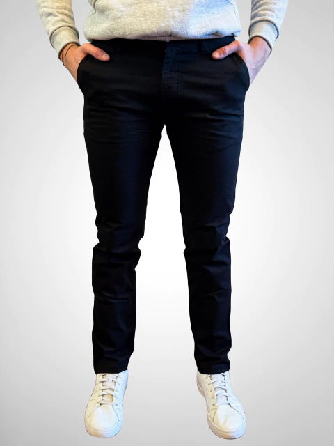 El negro liso lo convierte en una prenda comodín: ideal para combinar con camisas, buzos o remeras. Un básico versátil que podés usar de día o de noche, en un look relajado o más arreglado.